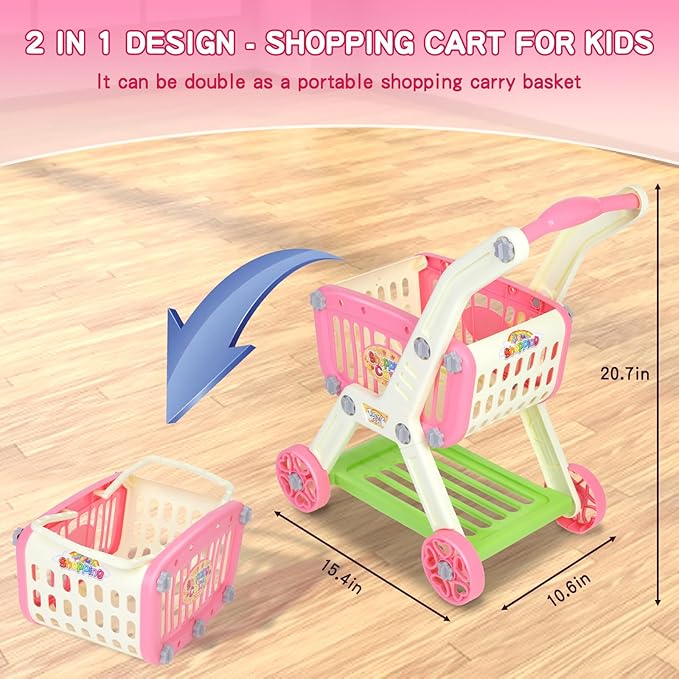 - 【2 IN 1 Toy Shopping Cart】Shopping cart for kids can be double as a shopping basket. Offer an other way for playing, provide endless hours of fun for kids.