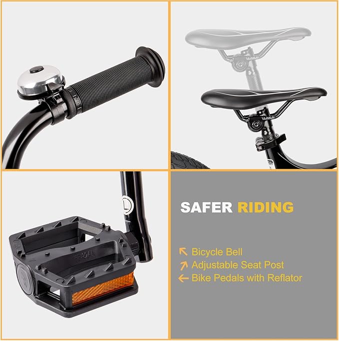 - 【Boys and Girls Bike Ages 7-9】: 18 Inch kids bike offered 2 disc brake, features hand brakes, just like an adult bike, but small, durable, and created with little hands in mind. Your kid will be able to reach and pull the levers comfortably. Hand brakes are better suited to riding on dirt roads or backcountry trails. As kids ride further over more varied terrain, they become comfortable enough to try some tricks. This confidence translates to independence, adventure, and endless possibilities.