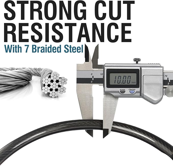 - Made With 7 Braided Steel - Our lock for bike is made of heavy-duty 7 braided steels to deter theft, providing you with peace of mind. Now in straight cable!