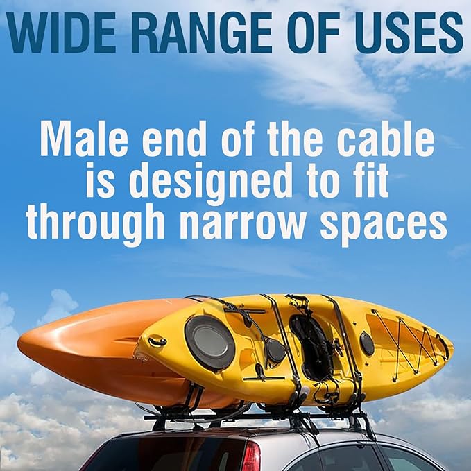 - Multipurpose Design - Male end of the cable is designed to fit through narrow and tight spaces making it perfect to secure kayaks and paddleboards and also other common items like scooters, gates, etc