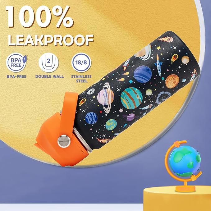 18oz Kids Insulated Water Bottle with Straw Lid - 18/8 Stainless Steel Kid Cup BPA-FREE Travel Tumbler Double Wall Vacuum Leak Proof Portable Toddler Water Bottle (Space)