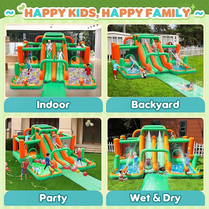 - Various Uses: This bounce house is suitable for use in many different environments. For example, wet or dry, indoor, outdoor, backyard, parties, festivals, weddings and more. So you can choose it without any hesitation
