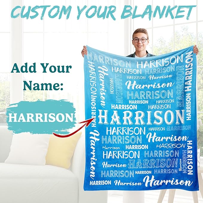 - How to Customize: Click the "Customize Now" button, Input your own name and text to personalize a unique light and soft name blanket, then we will turn your loved one's name into a unique keepsake blanket. Show him/her I love you with this personalized name blanket. When you purchase one of our personalized name throw blankets, you will receive a throw blanket with "name text content".