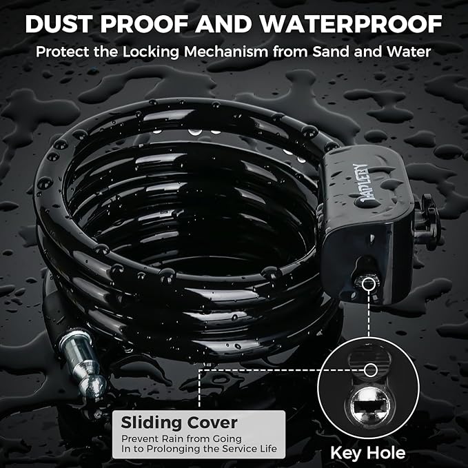 - 3. EASY TO USE: The lock's smooth locking mechanism operates flawlessly, providing quick and hassle-free securing and releasing of the bike. especially can lock it without using the key. and sliding cover protect the lock from rain and dust, prolonging the service life.