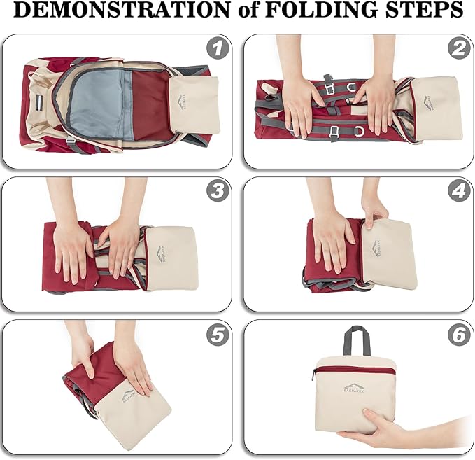 - Foldable & Lightweight:The Foldable backpack weighs only 0.88 pounds and can be easily folded into a small one for storage. The folded size is only 7×6×2inch, which is not bigger than a book and takes very small space.To avoid overweight charge, simply unfold from your checked bags and use it as a carry on for your excess baggage