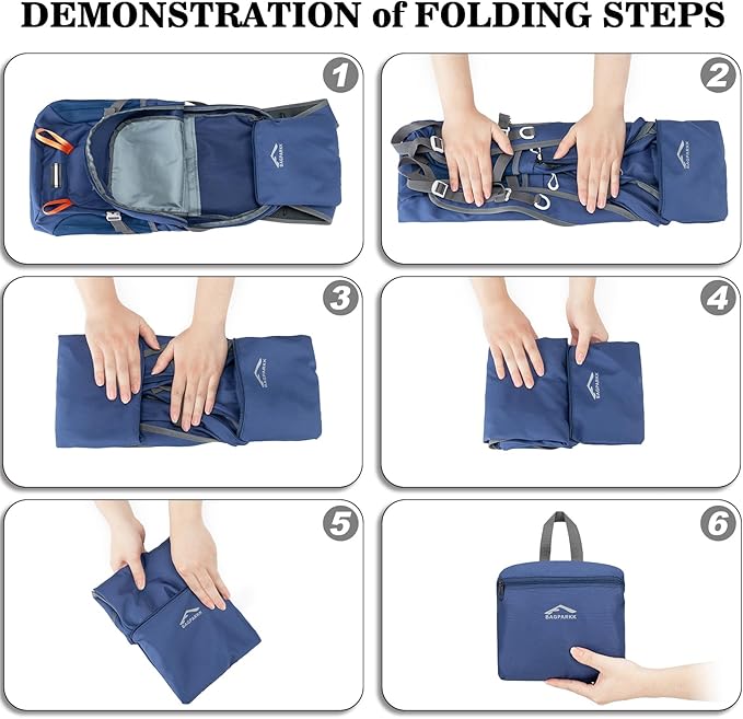 - Foldable & Lightweight:The Foldable backpack weighs only 0.88 pounds and can be easily folded into a small one for storage. The folded size is only 7×6×2inch, which is not bigger than a book and takes very small space.To avoid overweight charge, simply unfold from your checked bags and use it as a carry on for your excess baggage