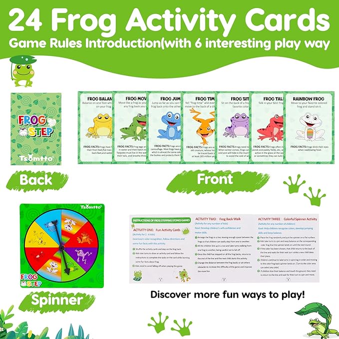 - 【Kids Balance Stepping Stones Set】The stepping stone for kids contains 6 different rainbow color frog stepping stones, with different DIY eye stickers, a spinner, activity cards (with fun frog knowledge) and game instructions. It is a fun way for children to learn through play, fostering their love of sports from an early age, ideal children's sports starter toy. Suitable for kids 3 4 5 6 7 8 year old, is a good choice for sensory autism tovs for kids 5-7.