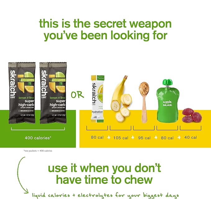 Skratch Labs Super High-Carb Drink Mix Packets - Carbohydrate Powder - Cluster Dextrin and Electrolytes - Endurance Energy- Energy Gel Alternative - Lemon/Lime - 8 Single Serving Packets - Non-GMO