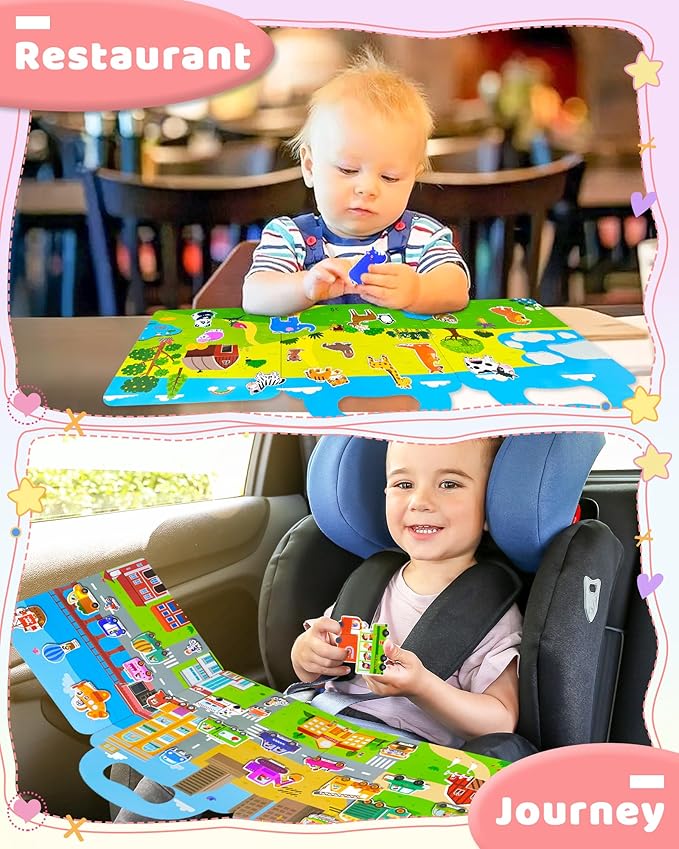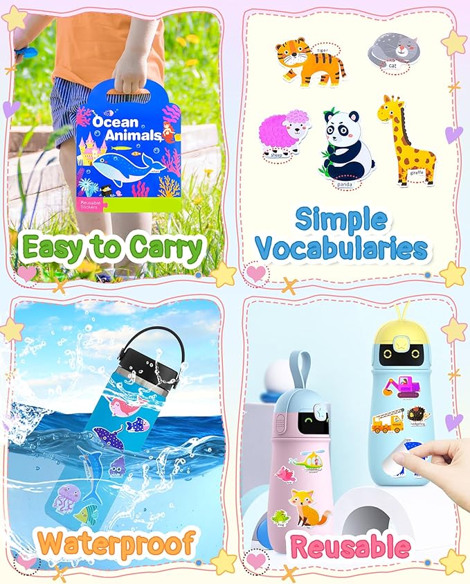 - Portable Design: Sticker books for toddler 2-4 year portable with handle and storage for stickers, can be used on smooth surfaces like windows, water bottles, and more.