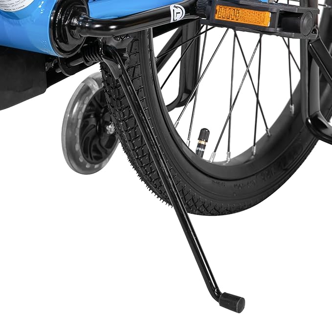 - DESIGN FOR KIDS - 1.This kids bike comes with flash training wheel, basket and water bottle for early rider. 2.Quick release seat simplify the height adjustment. 3.Saddle with holder to learn riding when the training wheel is off. 4. Foot brake and handbrake easy to provide phenomenal stopping power when needed.