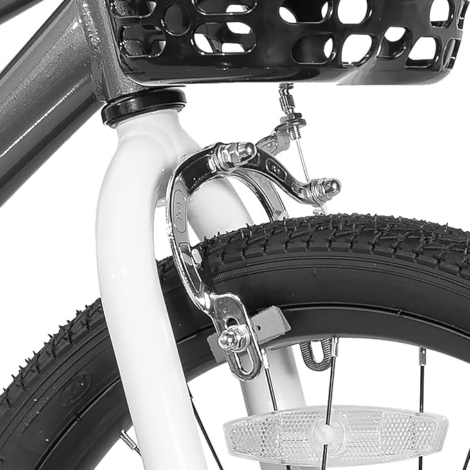 - DESIGN FOR KIDS - 1.This kids bike comes with flash training wheel, basket and water bottle for early rider. 2.Quick release seat simplify the height adjustment. 3.Saddle with holder to learn riding when the training wheel is off. 4. Foot brake and handbrake easy to provide phenomenal stopping power when needed.