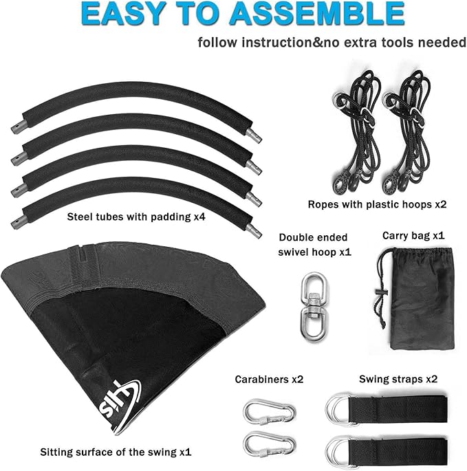 - INSTALLS IN MINUTES: Yorovent flying saucer swing frame has a detachable design,so the swing is very easy to put together and disassembles for storage.With adjustable ropes and long straps,whoever is using it,the round swing is easily to be adjusted to the right height,and be installed in any horizontal branch or pole.