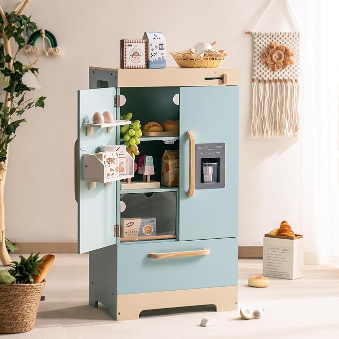 - Durable and Safe: Crafted from high-quality wood materials, this kids refrigerator is built to withstand enthusiastic play while ensuring safety for young users. Its sturdy construction and smooth edges provide peace of mind for parents, making it an ideal choice for sparking creativity and imaginative exploration.