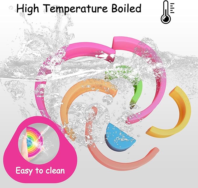 - Skill development: Our Silicone Stacking Toy is designed to support your child’s growth, both physically and mentally. As they stack and nest the colorful pieces, they’ll develop essential skills like hand-eye coordination, fine motor skills, and spatial awareness. This engaging toy also encourages creativity, problem-solving, and logical thinking, all while teaching patience and focus. Your child will have fun while building a strong foundation for future learning and growth!