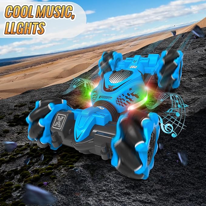 - Superior Gaming Experience: Gesture sensing car has cool color-changing lights, realistic sound effects and cheerful music. Amaze boys and girls with various thrilling stunts and immersive driving experience. Day or night, indoors and outdoors, this RC car is more fun