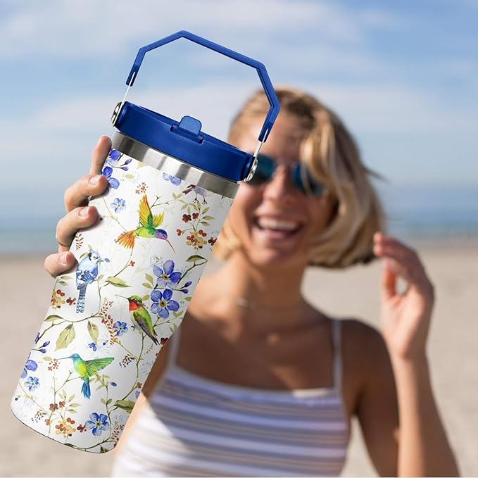 30 oz Hummingbird Flip Tumbler with Handle Lid and Straw,Hummingbird Stainless Steel Coffee Tumbler Mug Cup Watter Botter,Bird Gifts for Bird Lovers Women, Hummingbird Stuff/Accessories