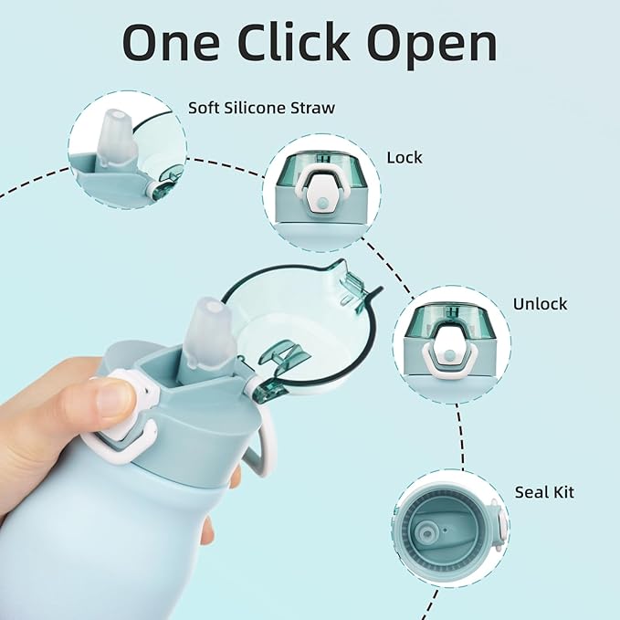 - Leak Proof Locking Lid: Open Your Insulated Water Bottle With The Simple Push Of A Button, Easy For One-Handed Use, The Bottle Has A Protective Cap That Keeps The Drinking Spout Clean, Has A Silicone Locking Latch To Prevent The Lid From Opening