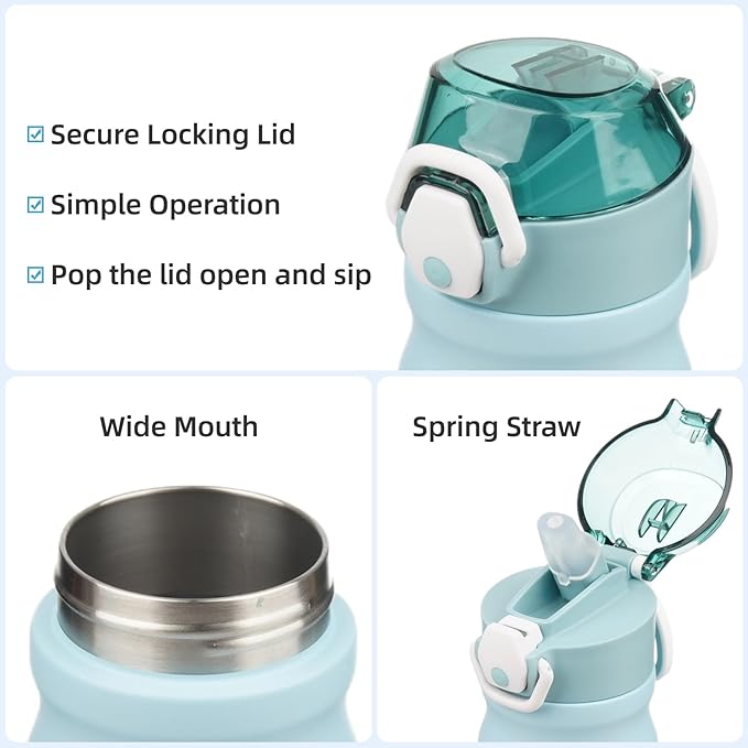 - Equipped with a lockable flip lid and a spring straw, the bottle is leak-proof,left it in your bag without worrying any spills. Simple operation design ensures you Just pop the lid open and sip.Soft silicone spout makes a nice drinking experience.