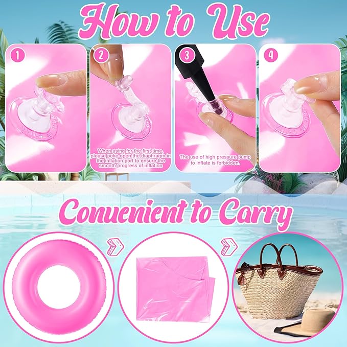 - Versatile Summer Accessories: the inflatable rings for pool serve as ideal summer themed accessories, whether indoors or outdoors; They will add more fun and excitement to your summer and pool parties; Also suitable for beach parties, birthday parties, summer vacations, graduations, bridal showers, bachelorettes and other themed parties