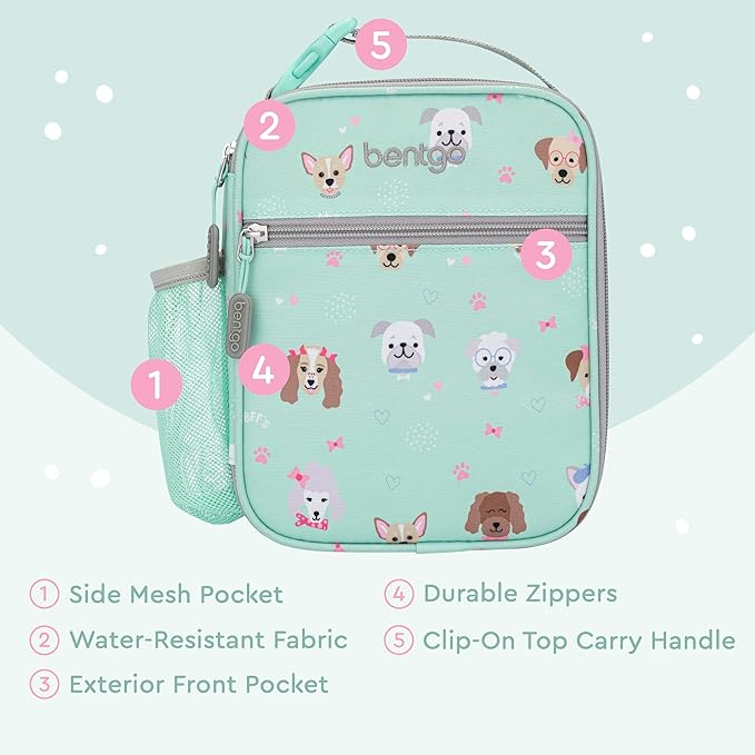Bentgo® Kids Insulated Lunch Tote - Water-Resistant, Reusable, Lightweight & Durable Lunch Bag with Water Bottle Holder & Mesh Pocket, Fits Lunch Box & Water Bottle - Ideal for Ages 3+ (Puppy)