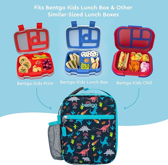 Bentgo Kids Insulated Lunch Tote - Water-Resistant, Reusable, Lightweight & Durable Lunch Bag with Water Bottle Holder & Exterior Pocket, Fits Lunch Box & Water Bottle - Ideal for Ages 3+ (Dinosaur)