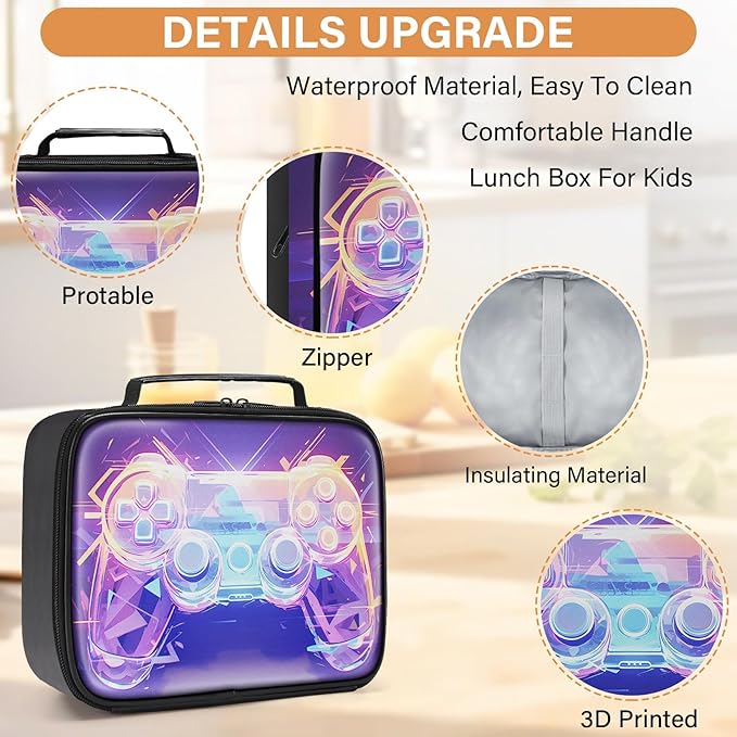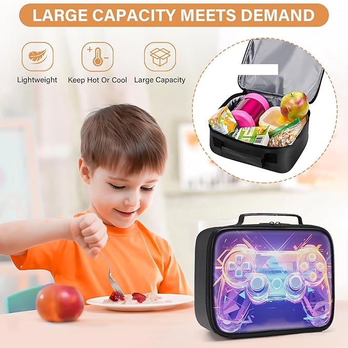 - 【Sturdy and Portable】 Crafted from high-quality materials, our gamer lunch box for boys is designed to withstand daily use. Featuring sturdy zippers for secure storage, this lunch box for kids is lightweight and easy to carry, making it ideal for gamers on the go, whether at work or during outdoor activities.