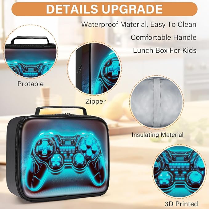 - 【Sturdy and Portable】 Crafted from high-quality materials, our gamer lunch box for boys is designed to withstand daily use. Featuring sturdy zippers for secure storage, this lunch box for kids is lightweight and easy to carry, making it ideal for gamers on the go, whether at work or during outdoor activities.