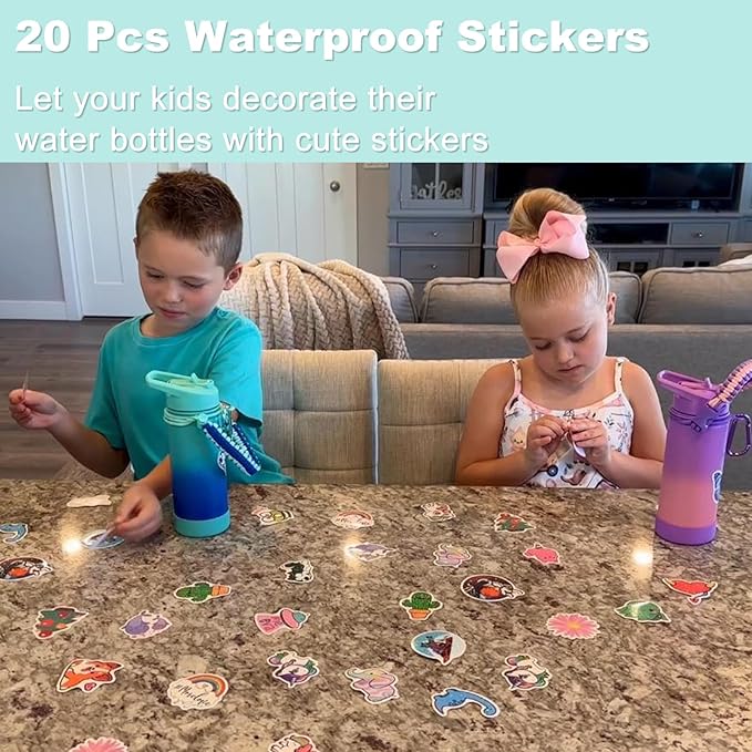 - Designing Unique Water Bottle:Almost every kids is keen on craft. We offer 20 Pcs cute waterproof stickers. Let your child indulge in creativity. Not only that, a DIY water bottle can attract your child's attention better and make them drink more water. It's an ideal gift for your kids for Birthday, Children's Day, Christmas, New Year, Back to School