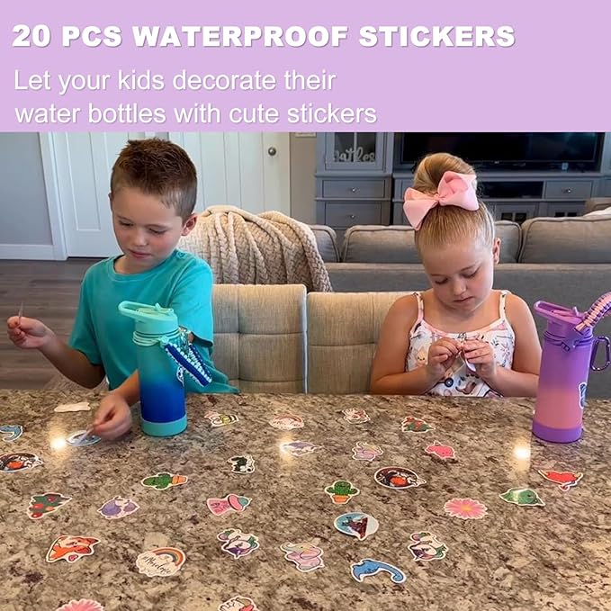 - Designing Unique Water Bottle:Almost every kids is keen on craft. We offer 20 Pcs cute waterproof stickers. Let your child indulge in creativity. Not only that, a DIY water bottle can attract your child's attention better and make them drink more water. It's an ideal gift for your kids for Birthday, Children's Day, Christmas, New Year, Back to School