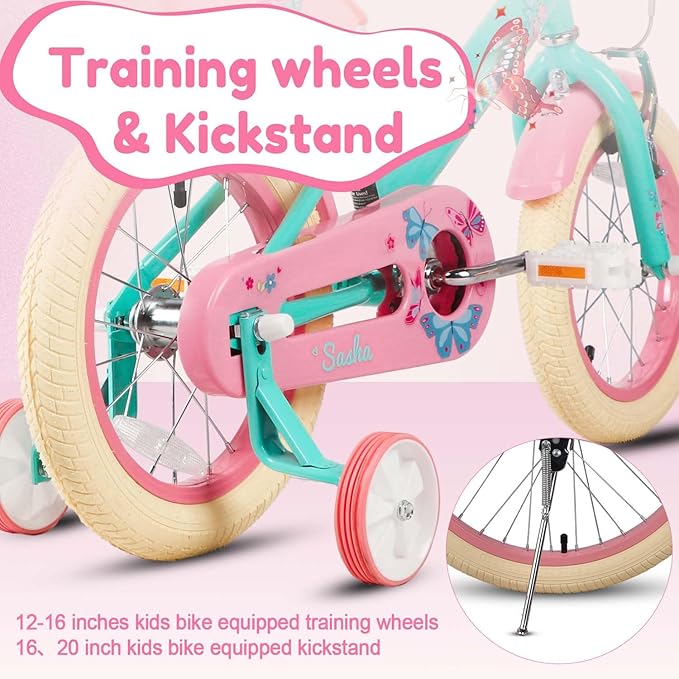 - 【SPECIALLY FOR PRINCESS】Short-reach aluminum brake levers, lower stand-over height, protective stem design and kickstand make it convenient and safe for your girl who first plant seeds of riding. The butterflies and flowers on the frame are very popular among children.