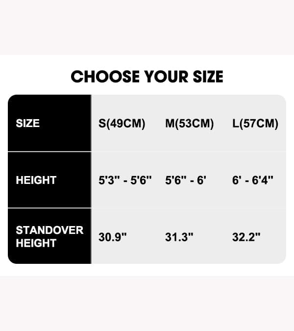- Size Guide: Size S (49 cm) for women and men between 5'3" to 5'6", Size M (53 cm) for rider between 5'6" & 6', Size L (57 cm) for adult between 6'to 6'4"; 90% pre-assembled and easy to assemble; The delivery box include free installation tools and pedals
