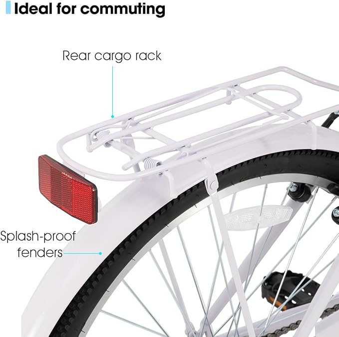 - Quality Tires: Adult beach cruiser bikes feature 26-inch wheels for excellent roll and a cushioned, stable ride, making a lady's daily commute in the city more energy efficient and faster
