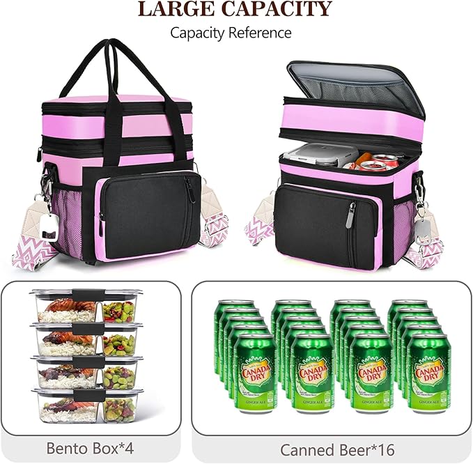 - 【Multi-Functional & Versatile】Whether you're heading to work, a picnic, the beach, or traveling, this double-deck lunch bag works as a lunch tote, cooler, or lunch box for women and men. Pack healthy meals for yourself or loved ones and enjoy fresh food anywhere, anytime.