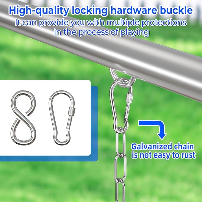 - Rust-Resistant Galvanized Chain: The swing features a robust 66-inch galvanized chain, specially coated with a durable layer to prevent rust and corrosion. This ensures long-lasting performance and extends the lifespan of the swing.