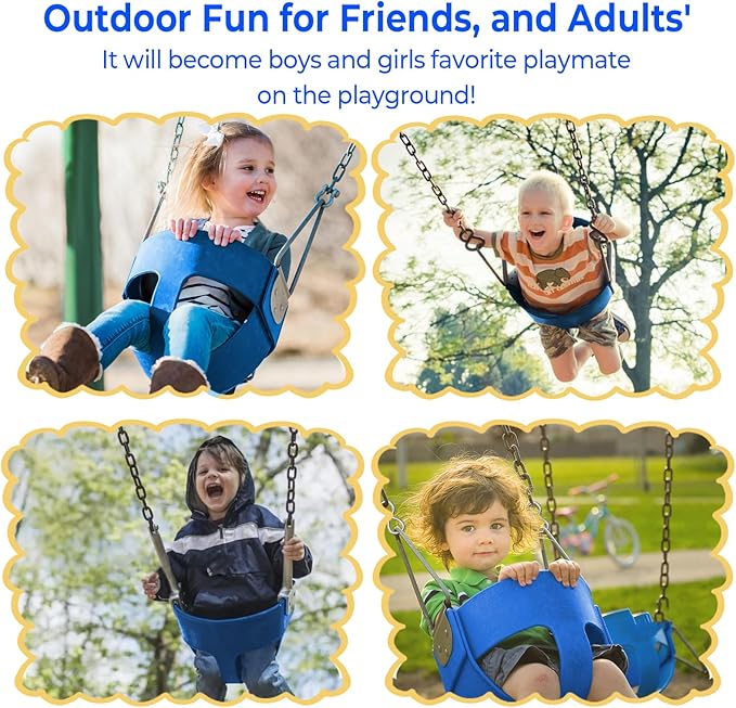 - Safety and Comfort Combined: With its focus on safety features and enhanced comfort, the Bucket Toddler Swing Seat offers a worry-free swinging experience for your child. Watch them delight in outdoor playtime while you relax, knowing that they are securely and comfortably enjoying their swing.