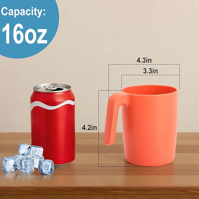 Wheat Straw Coffee Mugs Set of 6, Plastic Coffee Cups 16 OZ, Microwave and Dishwahser Safe Plastic Mugs with Handles, Unbreakable Camping coffee Mugs for Tea, Kitchen, RV - Multicolor
