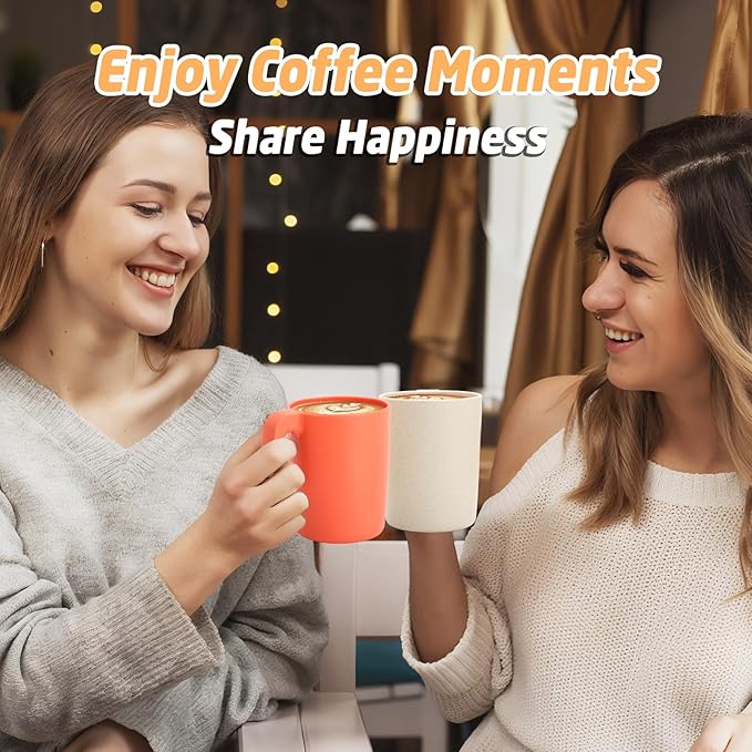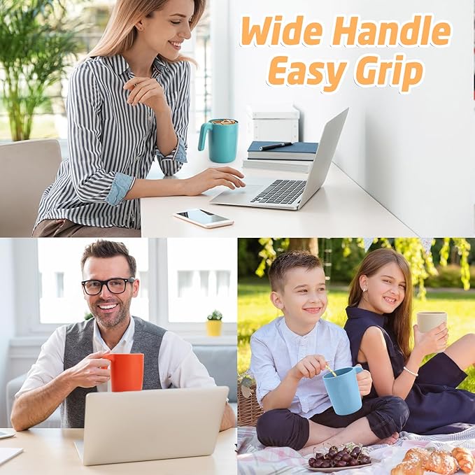 - 【Comfotable Handle】Even with larger hands, the handle keeps your fingers safely away from the heat. It’s designed for a comfortable and secure grip—your thumb rests naturally along the contour, so there’s no slipping. These coffee cups can be stacked or hang for easy storage and only take up a small space