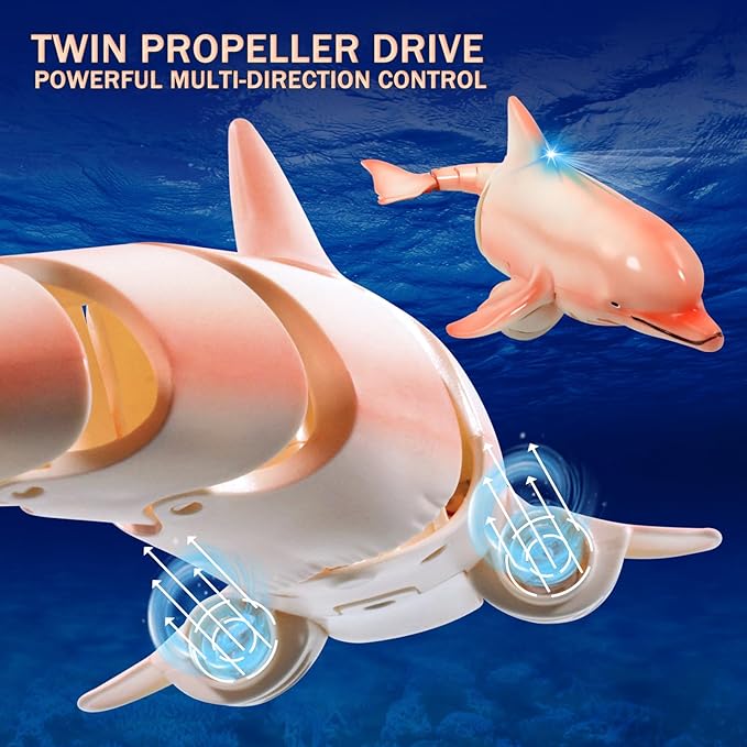 - 【RC Dolphin Water Toys】Novel in design,harmonious colours with light,streamlined body,flexible tail joints,after you are proficient in operation, you can swing freely left and right like real oceanic dolphins, bringing you unlimited reverie and fun