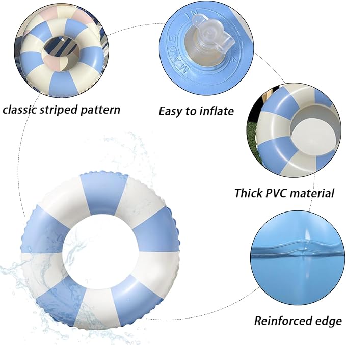 - 【Cute Children's Swim Rings】With a classic stylish striped design, this inflatable pool floats add a romantic and playful touch to your summer pool parties and water gatherings. Ideal for beach and pool photos, so vibrant and cheerful for a child!