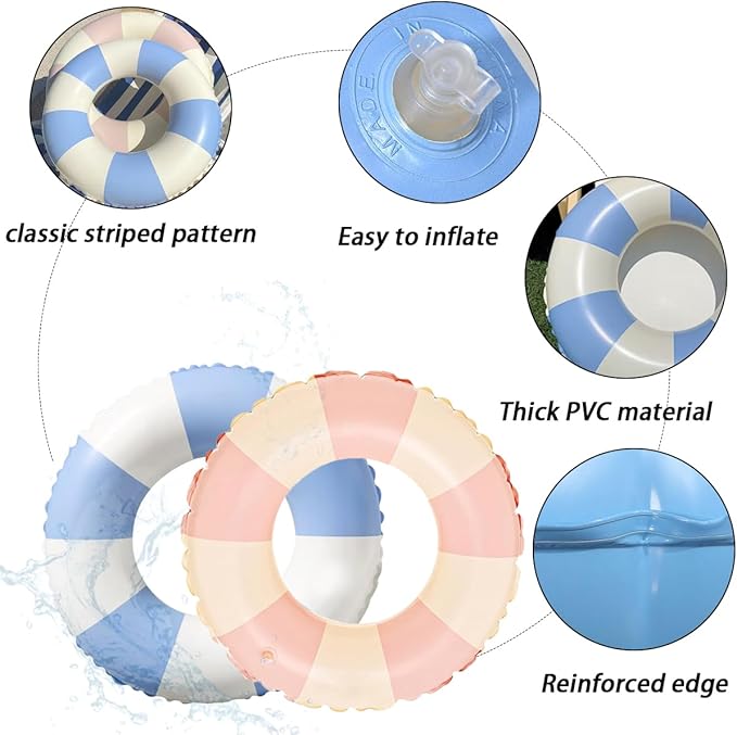 - 【Cute Children's Swim Rings】With a classic stylish striped design, this inflatable pool floats add a romantic and playful touch to your summer pool parties and water gatherings. Ideal for beach and pool photos, so vibrant and cheerful for a child!