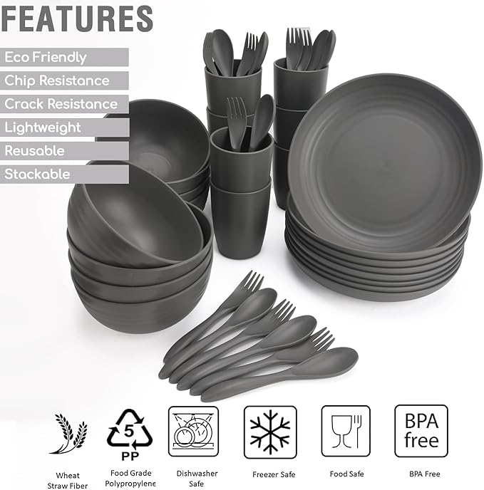 - 【UNBREAKABLE DINNERWARE】Made of wheat straw fiber, BPA-free, and food-safe PP material, these wheat straw dinnerware sets are unbreakable instead of conventional dinnerware, with no worry about chips and cracks from dropping, super sturdy and durable. Light to hold and safe to use