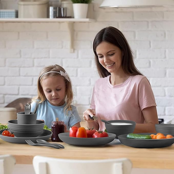 - 【DINNERWARE SETS MICROWAVE AND DISHWASHER SAFE】Our dish sets are microwave and dishwasher safe can withstand temperatures between -4°F to 248°F (-20℃ to 120℃), and are easy to clean, just with hot water and soap, the wheat straw dinnerware sets are clean in seconds!