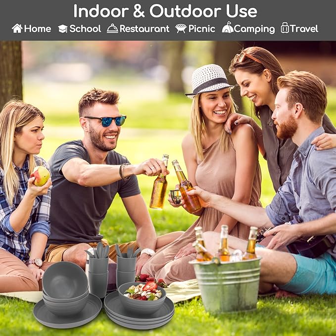 - 【MULTIPLE USE】Our reusable plates and bowls sets are lightweight and stackable to be used indoor and outdoor like home, school, dorm and office, party, picnic, camping, RV, etc, which are great altertives for traditional plastic plates, bowls and cups. Suitable for kids, toddlers, children and adults.