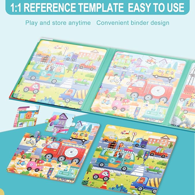- 🧩[3-IN-1 TRAFFIC PUZZLE]Each book has three sides with different illustrations, ship/traffic/road puzzles, 25-30-42 pieces from easy to hard, this is a challenging learning activity book that helps to develop motor skills and improve logical thinking.