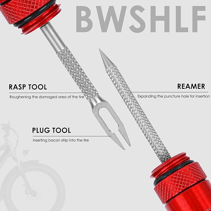 BWSHLF Tubeless Bike Tire Repair Kit for MTB and Road Bicycle Tires, Puncture Kit Include Bacon Strips Embedding Tool Red