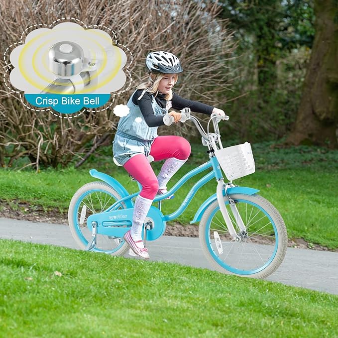 - [ Specially Designed for Young Riders ]: Featuring stylish outlook and stable training wheels, this bike for kids is sure to be a perfect gift for beginners to learn to ride. The bike seat and handlebar are height adjustable, suitable for growing kids. Apart from that, it also comes with a cute basket to fulfill kids’ storage requirements, adding more fun to their riding.