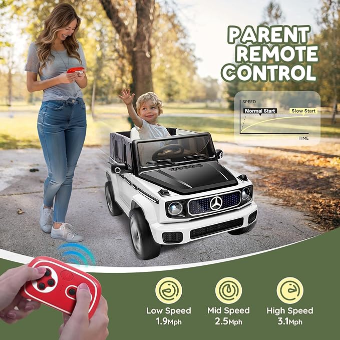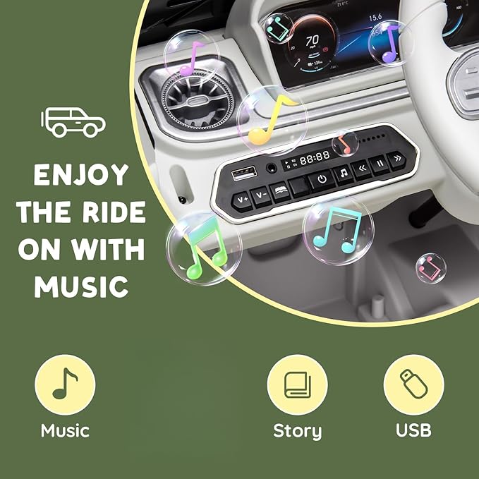 - Realistic Driving Experience: Recreating the luxury and elegant design details of the real car, featuring bright LED lights, built-in music, story player, USB, horn