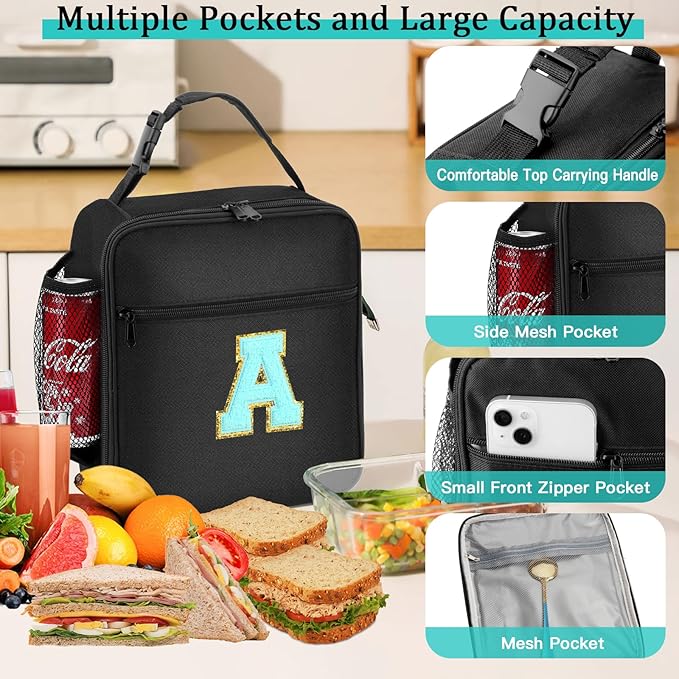 - Initial InsulatePersonalized Letter Patch Design: The unique letter design makes the lunch bag stand out. The letters patch on the lunch bags are hand-stitched, which is not only not easy to come off, but also comfortable to touch.d Lunch Bag, Lunch Box with Initial Letter Patch for Teen Adult, Reusable Lunch Bag for Men Women, Ideal Birthday Gift