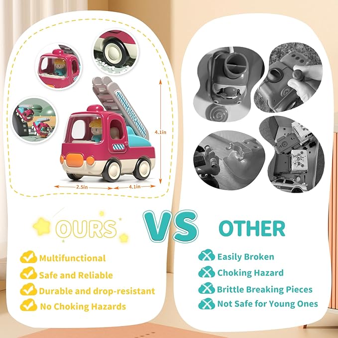- Safe ABS Material- Baby toy fire trucks and airplne made of durable,safe and strong ABS plastic with smooth edges, non-toxic and lead-free, give your children a beet playing experience