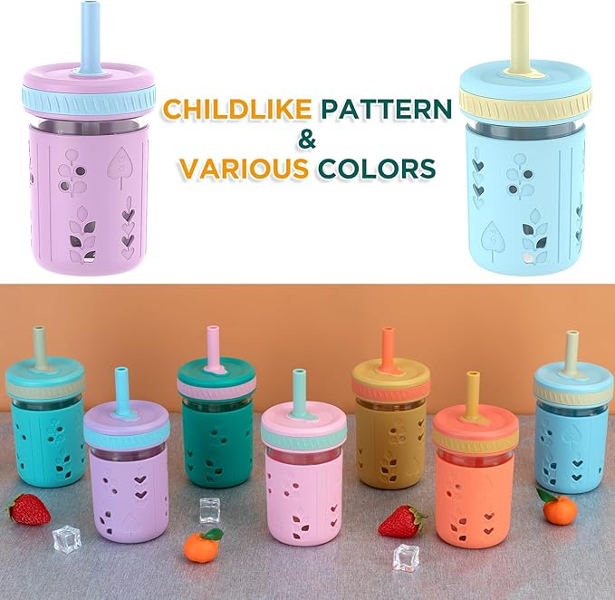 - High-Quality and Safe Material: Our set includes four high-quality glass mason jars, each 8oz, made from non-toxic, BPA-free glass. These kids cups are safe and durable, perfect for everyday use by your little ones.